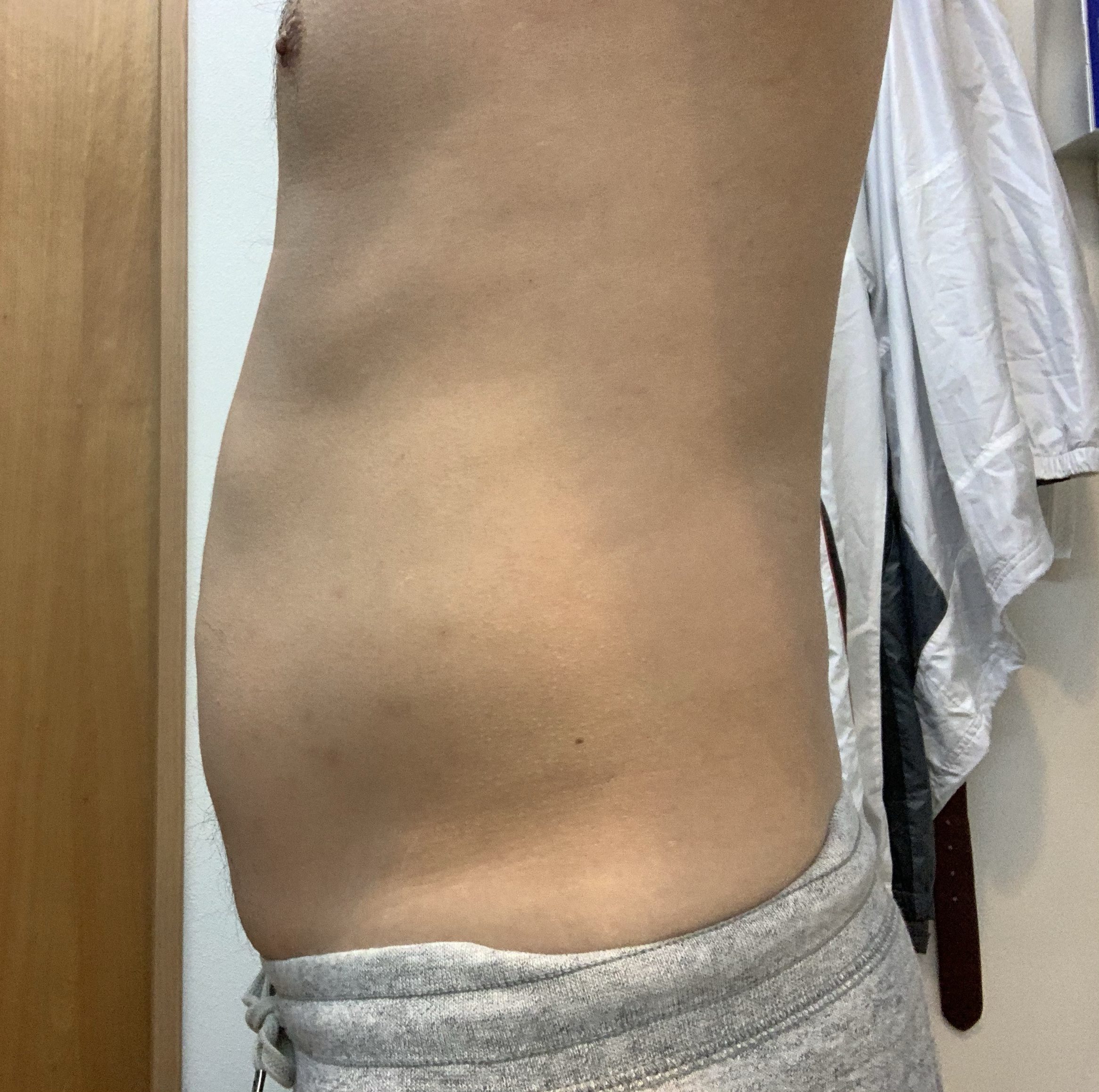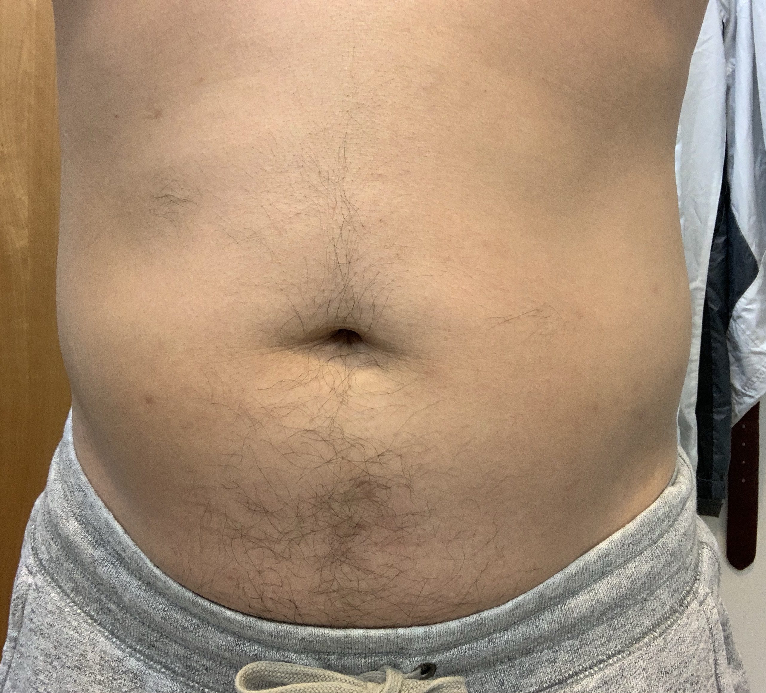 脂肪が1か月の間に急速に減ったため、皮膚の収縮がついていかず、ややたるみがちですが、それだけ効果があったということです。