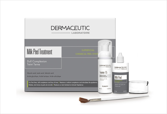 このフランスはDERMACEUTIC社(ダーマスーティック社)の「ミルクピール」は、「乳酸」「グリコール酸」そして「サリチル酸」の3つを絶妙に配合して、短時間でより効果的なピーリングを行えるように製品化したものです。