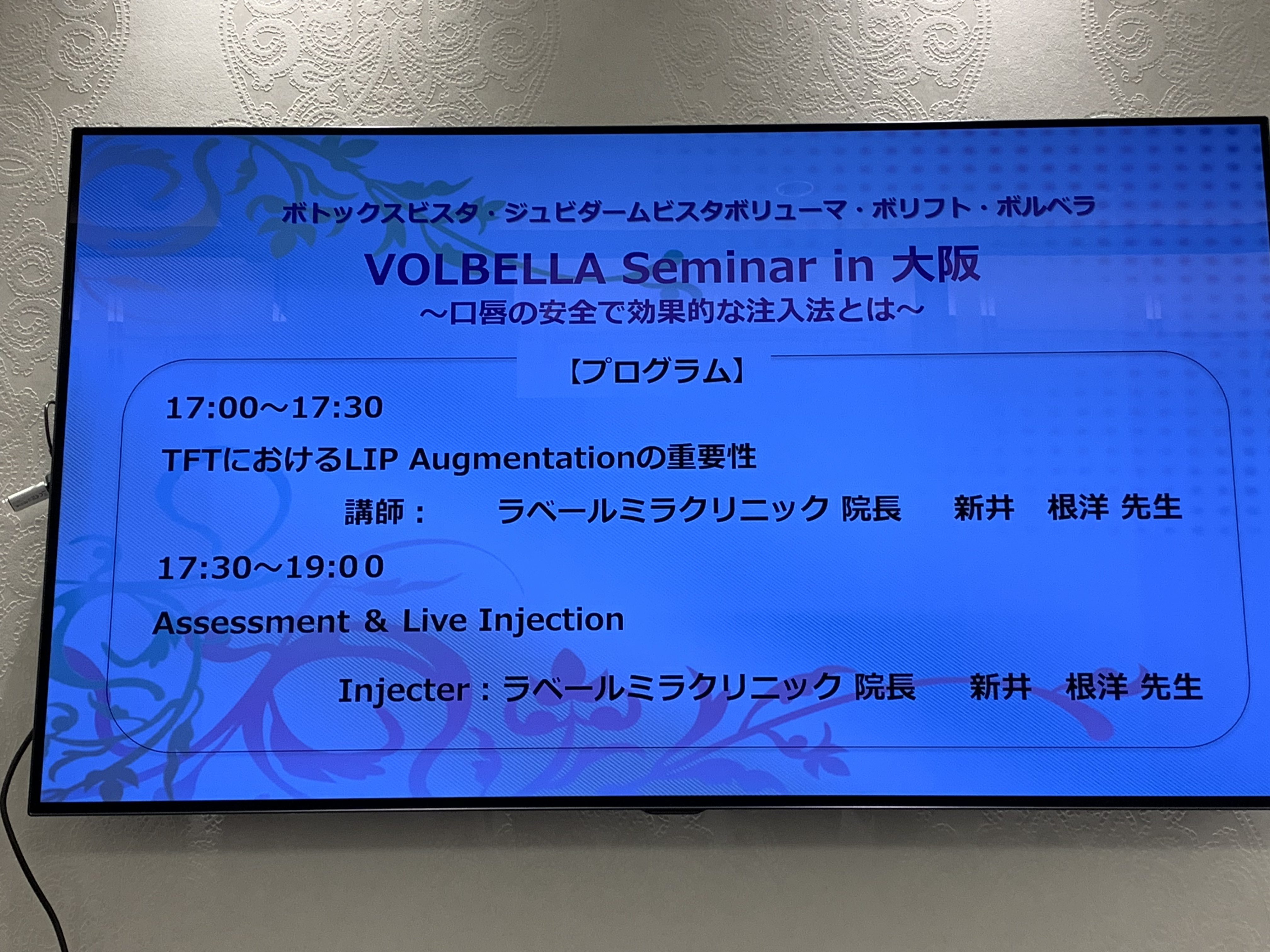 アラガン社のジュビダームシリーズの新製品、ボリューマ、ボリフトそしてボルベラを使用した、TFT(トータル・フェイシャル・セラピー)について、モニター患者さんに実際に施術をしながらの、レクチャーでした。