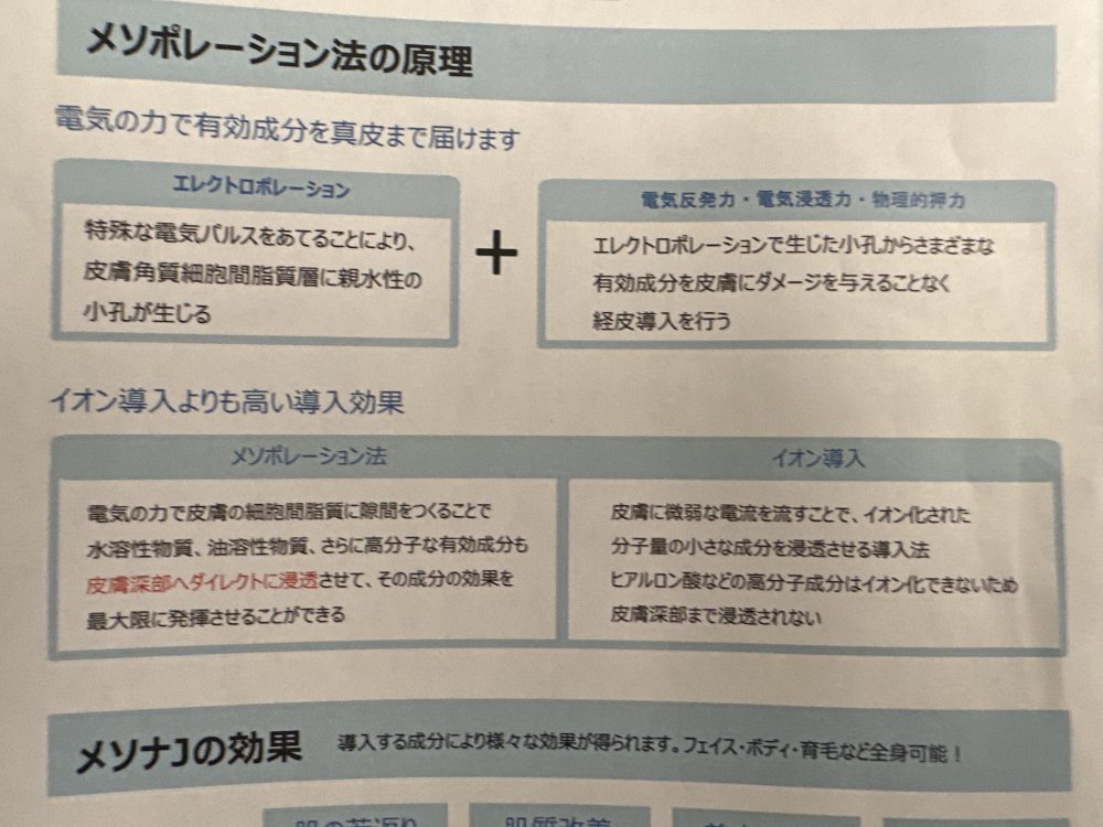 電流流して、細胞間に隙間が開く事を利用してビタミンCやトラネキサム酸を角質もしくはその奥までしっかりと浸透させる技術、という事。