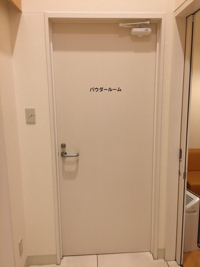ハイ、変なおじさん、ではなくて、小奇麗なパウダールームが現れます。