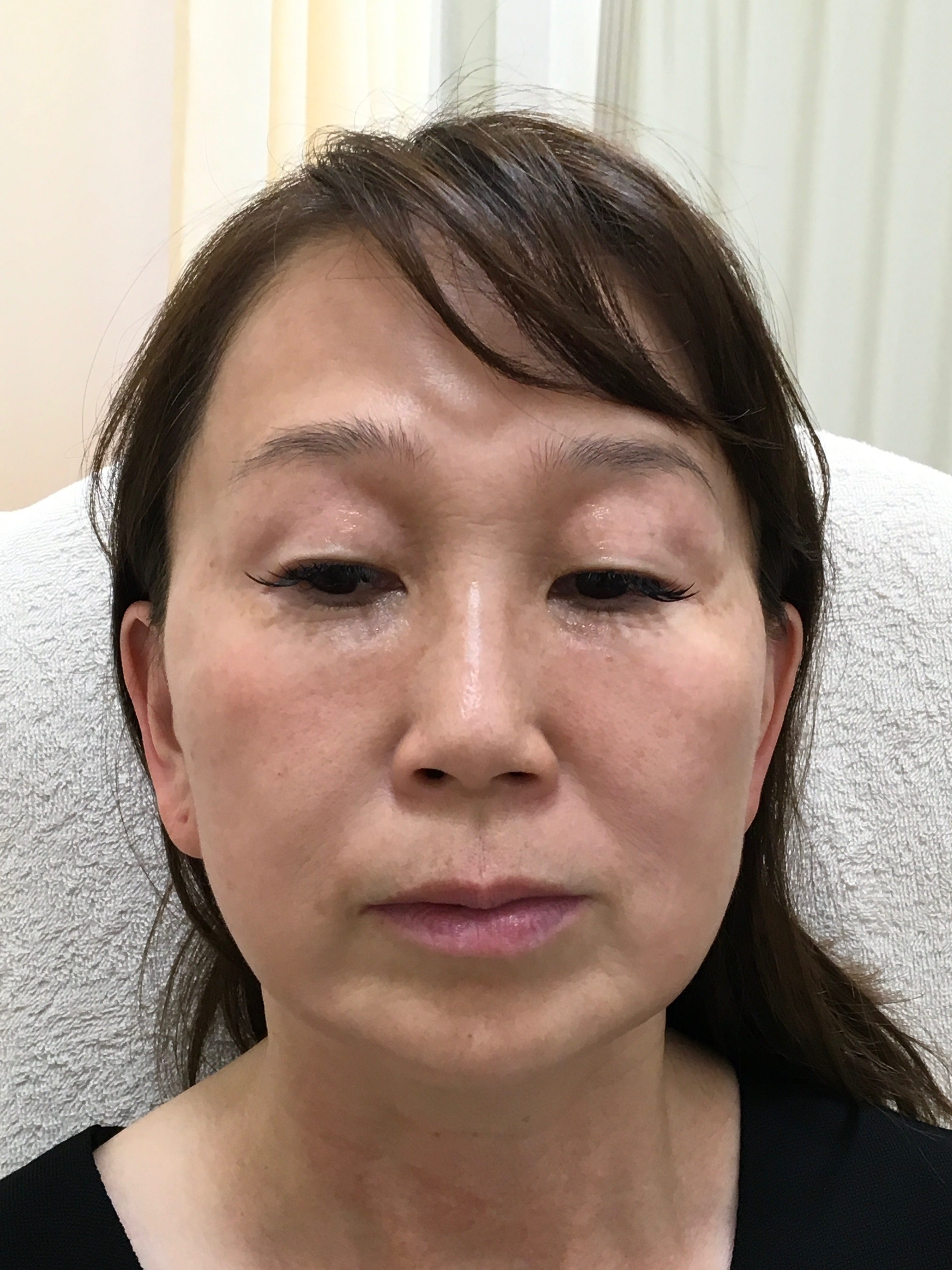 さて、今回のモデルは、Y.Mさん(推定年齢50歳)です。ラセムドを施術した直後なので少々皮膚の発赤はありますが、