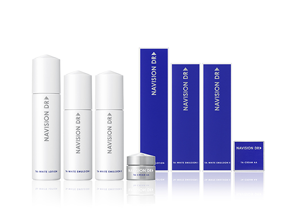 ナビジョンDRシリーズでは、「TAホワイトローションn」に「TAホワイトエマルジョンⅠ(みずみずしくうるおうタイプ)」もしくは「TAホワイトエマルジョンⅡ(しっとりうるおうタイプ)」のどちらかを併用し、単独使用を超えた相乗効果を狙います。