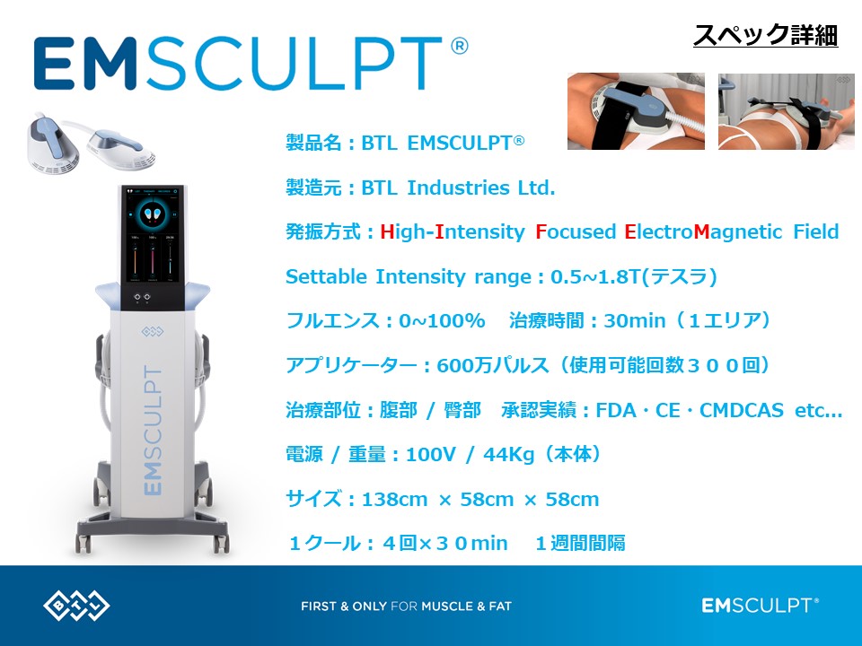 まずは、お試し10,000円(税別)で、エムスカルプトとは何たるものなのか、ご体感いただきたいと思います。