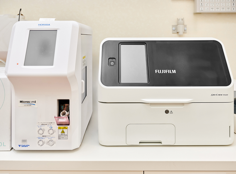 総合病院の救急外来レベルと同等の、血液検査ができる機材を装備しております。急性疾患の診断・治療に際して、有用な情報を得ることができ、迅速で確実な医療が可能となります。