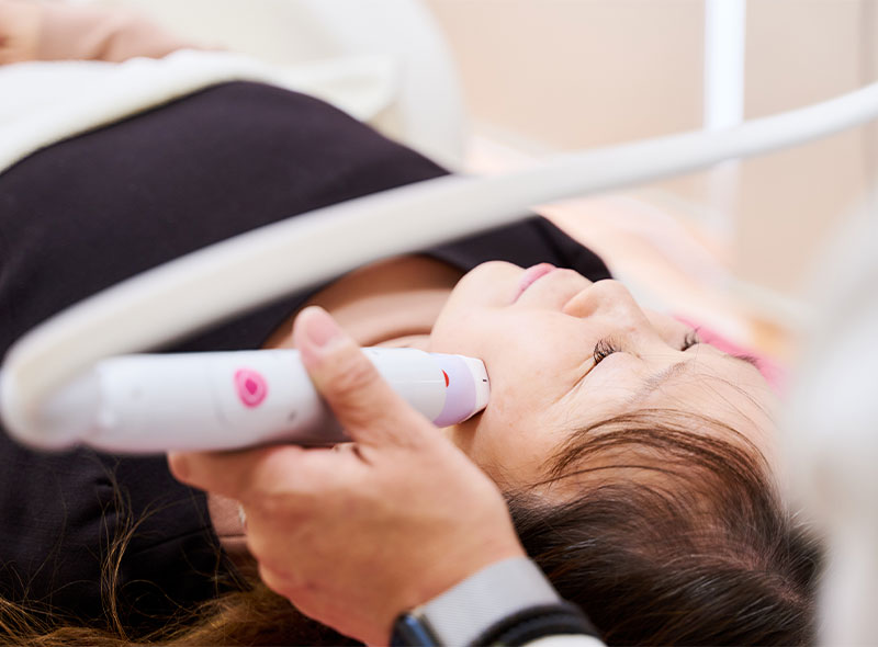 ボルニューマは脂肪層の引き締めや真皮層のコラーゲン生成を補助してお肌の弾力やハリをアップします。顔全体に照射することもできます。 - 小じわの改善